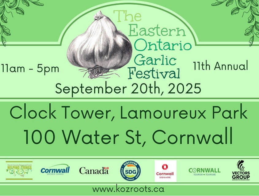The Eastern Ontario Garlic Festival is celebrating its 11th year on Saturday, September 20th from 11am to 5pm in Lamoureux Park around the Clock Tower.